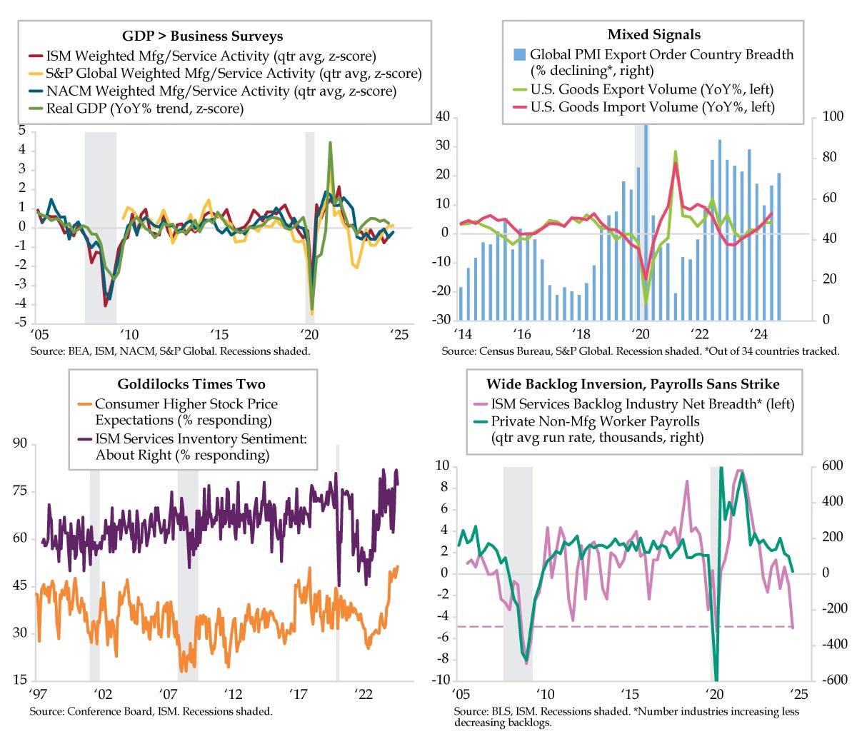 The notion of things not adding up permeated after the release of yesterday’s ISM Services headline, which defied credit managers’ guidance.