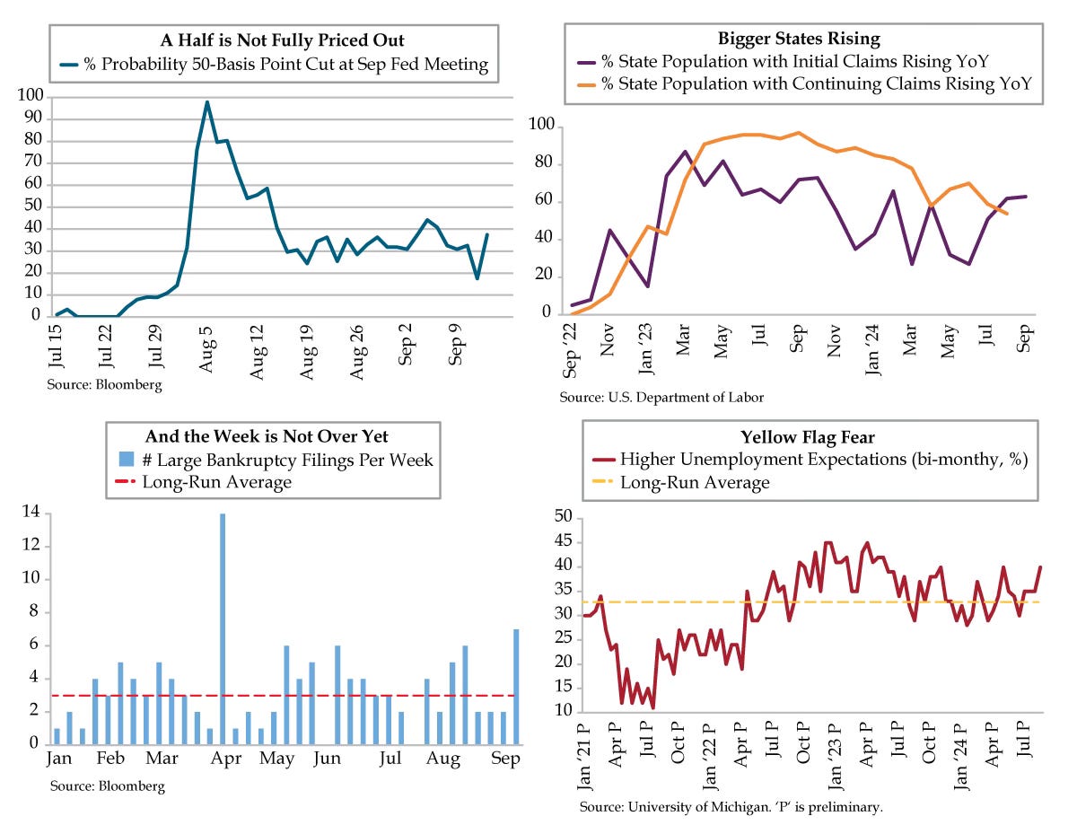 Extra thumbs also come in handy when posting on social media. In the space of 48 hours, Wall Street Journal reporter Nick Timiraos was in two places, almost at once. On Tuesday, he definitively downplayed a jumbo cut by the Fed next week. The shelter-induced increase in August’s core CPI made for a challenging backdrop against which to launch unusually large rate cuts come next week.