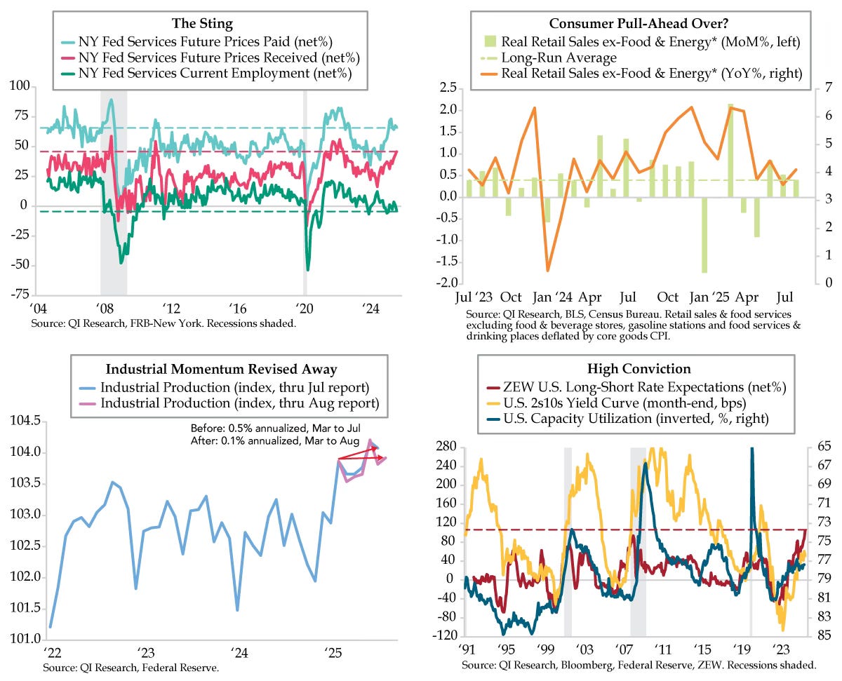 Charles Robert Redford Jr.’s passing yesterday had QI’s brain trust somberly remembering his best movies. Redford’s second and final film that he made with Newman, 1973’s The Sting, quickly translated to the New York Fed’s Business Leaders Survey. No doubt, the headline number got stung, falling to -19.4 in September, down from August’s -11.7 (not depicted). The fourth such test of the critical -20 threshold since 2023 solidified the drop-off from July’s “bounce” to -9.3 and reinforced the move as a ‘quadruple dip’.